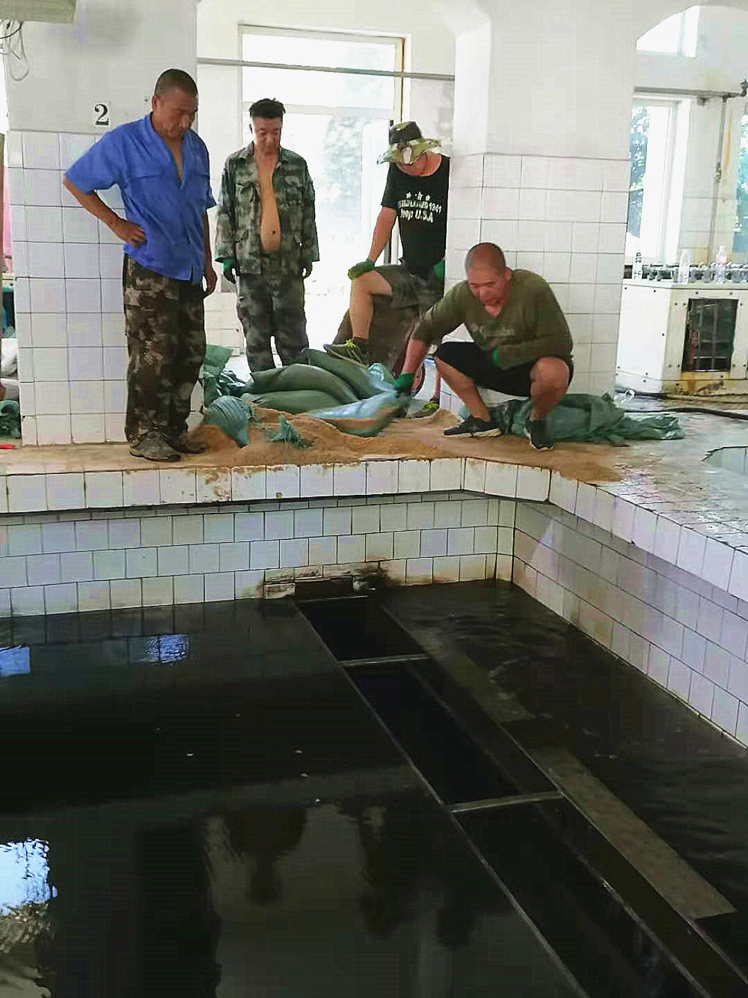 一水廠元寶山凈水場2號濾池于6月4日發生濾板變形漏砂故障而被迫停運,7月25日經廠家重新修復完成濾板裝配施工項目。此時正值酷暑,北部山區用水十分緊張。為盡快啟用2號濾池的凈水功能,水廠抽調檢修班和班組長以及部分黨員等二十余名骨干,頂著炎炎烈日,身處40攝氏度的高溫環境,按照篩選、裝運、推送、鋪裝等工序,加緊回填石英砂濾料。從早晨6點半連續奮戰到傍晚19點最終完成濾料回填工作,后經消毒調試次日恢復生產,為元寶山的汛期凈化生產提供有力保障。