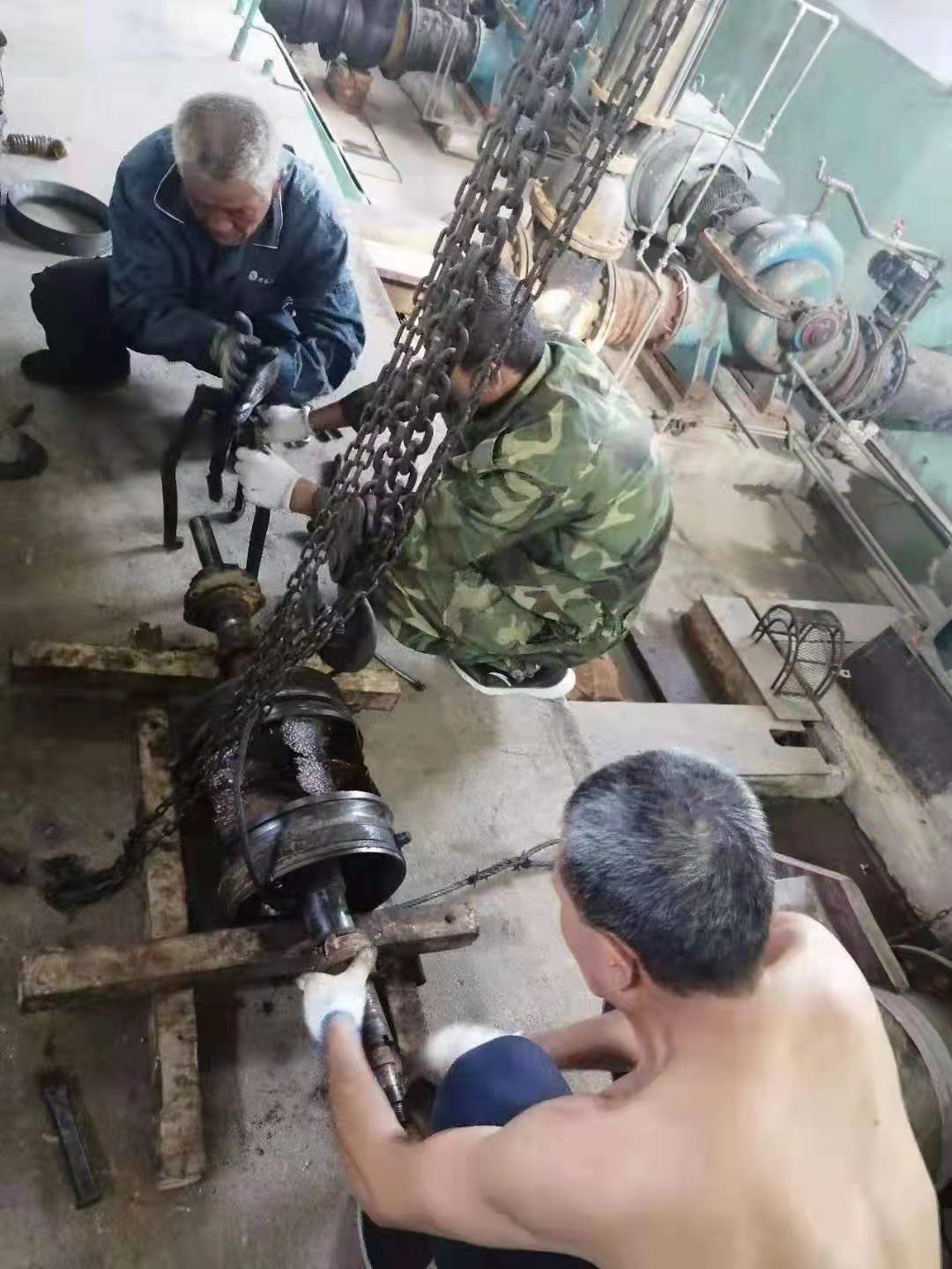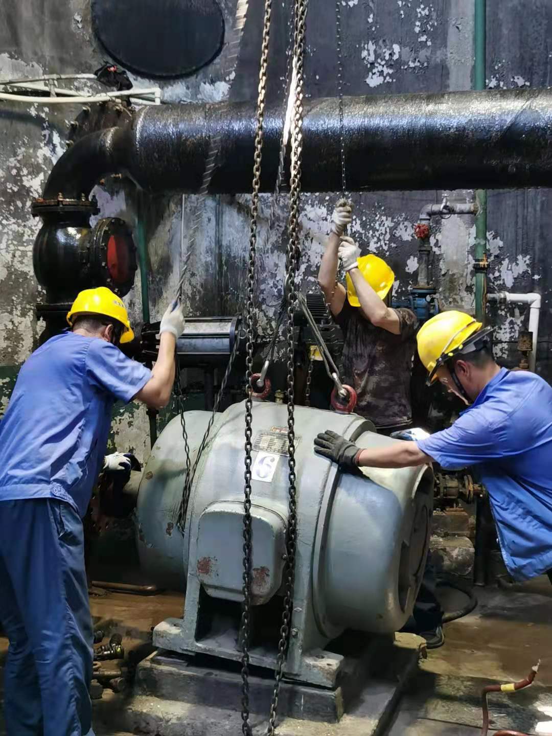 因三灣管道施工,從6月中旬開始庫區斷供,水廠全力抽取江水,水中雜物順流堵泵現象頻發。泵站值班人員隨時監測運行數據,及時拆卸泵殼清掏雜物以保證設備高效運行。其中愛河泵站5臺機組連續運行,堵泵情況最為嚴重。由于泵站屋頂低矮通風不暢,室內溫度超過五十攝氏度。為了維持取水效率,他們冒著中暑風險開泵搶修作業,充分展現了供水人愛崗敬業,服務社會的精神風貌。